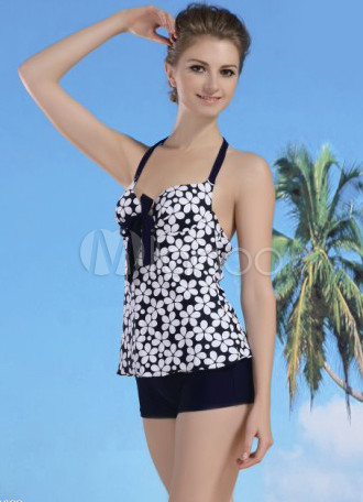 The adorable tankini swimsuit with cute small white and black flowers is so fantastic. The light sweetheart neckline with a beautiful black bow makes you sexy. Wearing this gorgeous swimsuit makes you more confident and cool .Considering the unique design and its high quality, this tankini swimsuit is worthy your money and you preference.