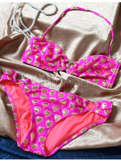 Hearts Printed Bandeau Spandex Polyester Women's Bikini Swimsuit On Sale