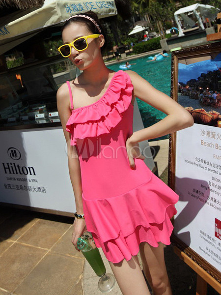Sweet Lycra Spandex Ruffles One Piece Swimsuit For Lady On Sale
